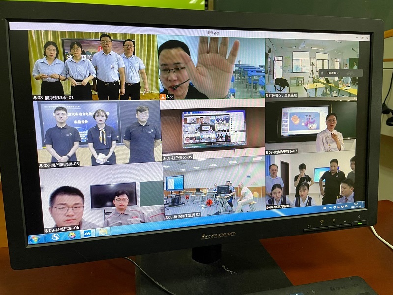 8月25日早上6:30所有参赛选手和技术人员全部就位,在工作人员的远程指引下依次进入线上候赛室、备赛室、比赛室。通过现场线上抽签,我校参赛团队第一个出场。本次决赛内容分为:实施报告、无生上课、答辩三个环节。几位参赛老师通过精彩的语言、清晰的讲解和新颖的课件,充分展示了各自的教学风采和教学技能。