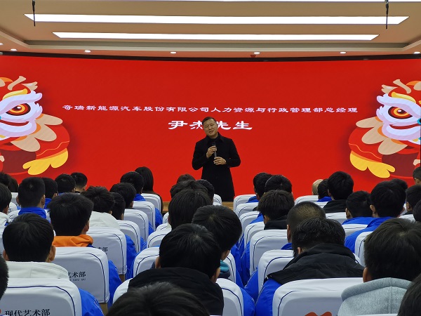 为进一步打造繁昌教育金名片,推进芜湖机械工程学校汽车专业学生的就业发展,2023年2月9日下午,在模拟导游实训室召开了汽修专业学生专业发展报告会,出席会议的嘉宾有奇瑞新能源汽车股份有限公司人力资源部与行政管理总经理尹杰,日本神野学园上海事务所首席代表郭妍希,芜湖市国际交流服务有限公司董事长藕学东,芜湖市国际交流服务有限公司日本事业部部长徐静,校党支部书记、校长刘琳,会议由副校长李鹏主持。22春汽修1、2班同学参加报告会。