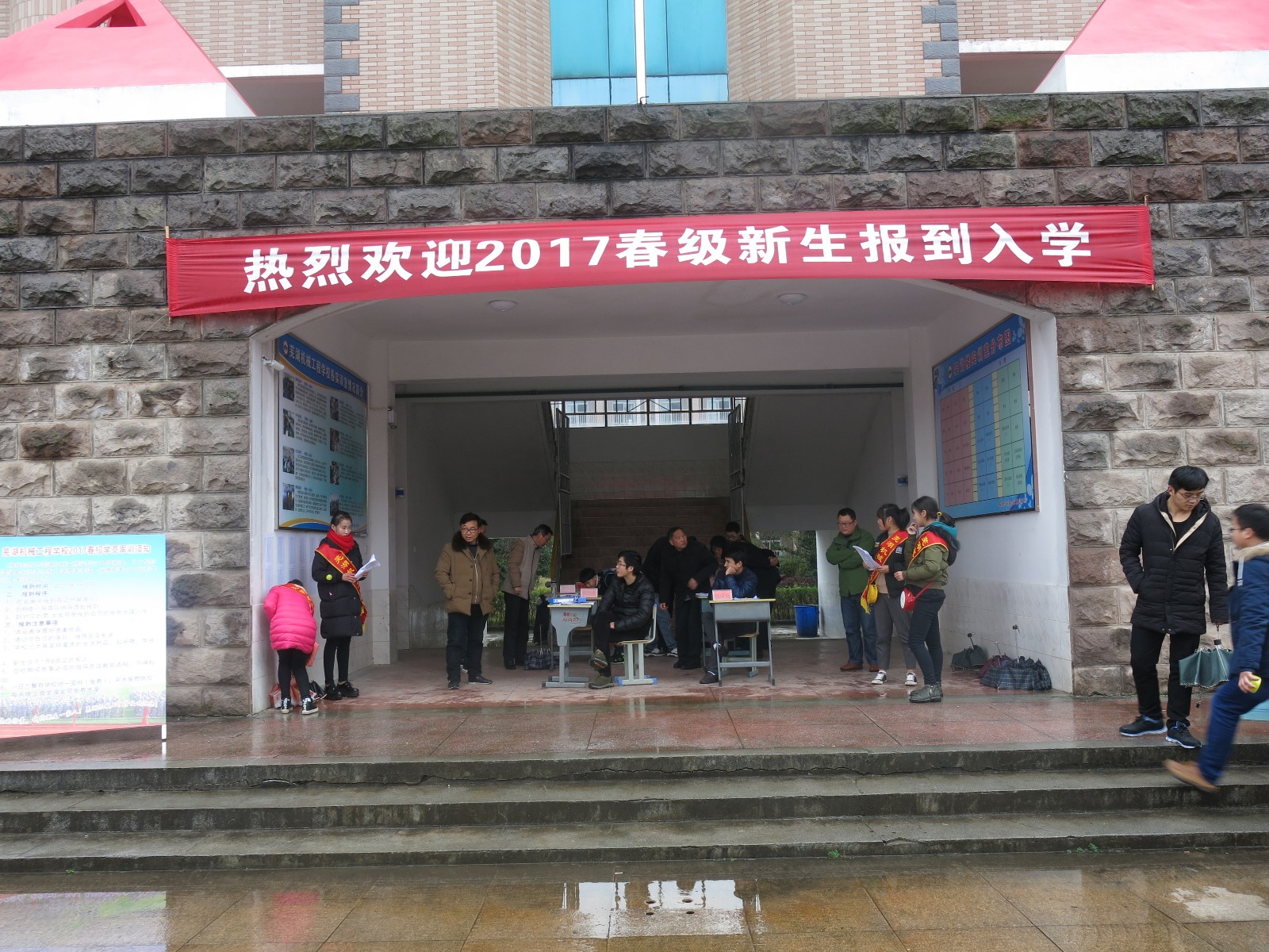 元月7日下午是芜湖机械工程学校2017级春招新生到校报到的日子。为做好入学新生接待工作,元月7日下午一点,根据校军训领导组的安排,各连队指导员、教官、工作人员、志愿者报务人员早早地到岗等待新生的到来。