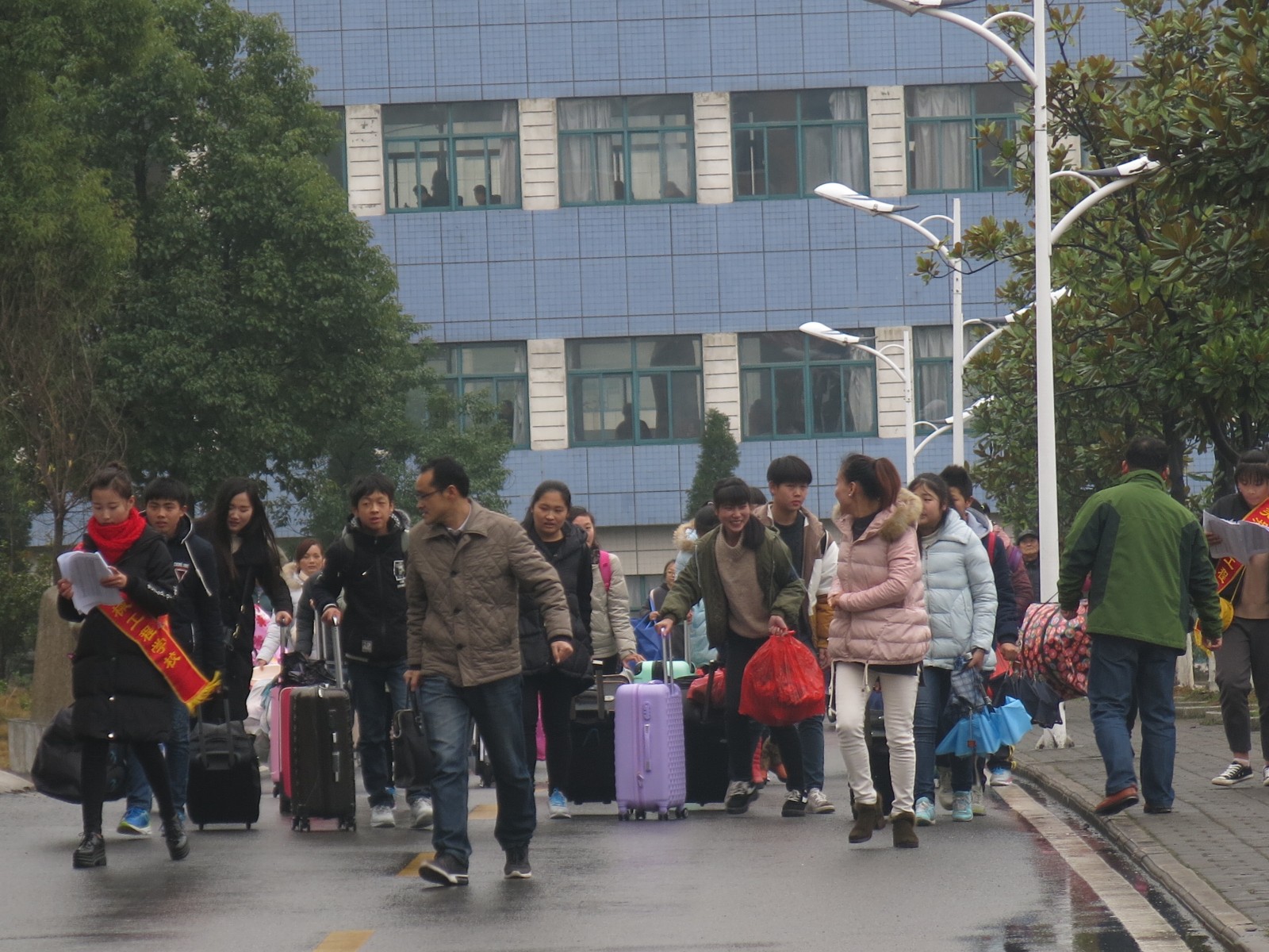 虽然天公不作美,寒冷的天空飘着细雨,可接待工作有条不紊,活跃的现场平添了几份暖意。