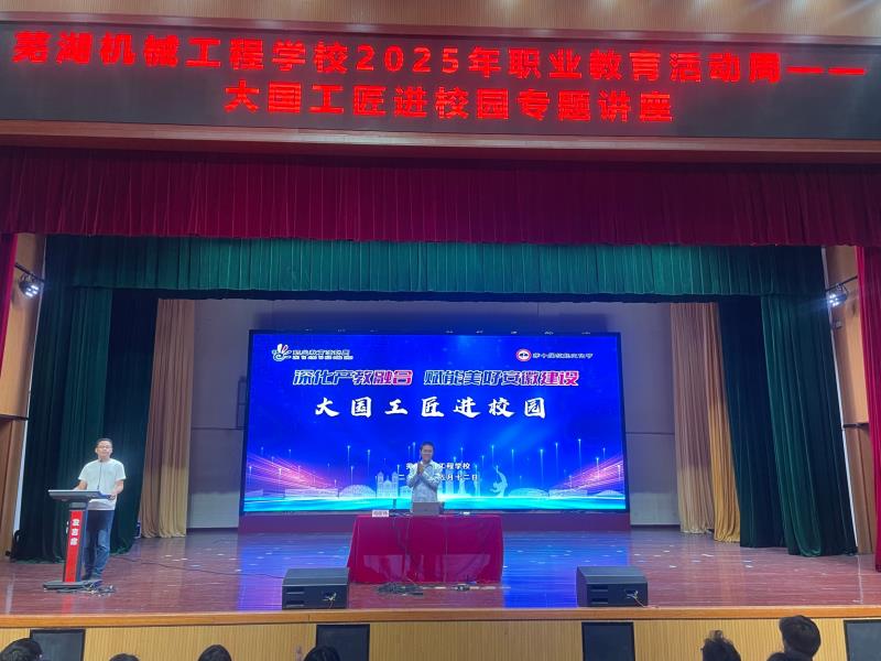 2025年5月12日,芜湖机械工程学校职业教育活动周拉开帷幕,特邀奇瑞新能源汽车股份有限公司正高级工程师、省政府津贴专家周俊锋教授走进校园,为师生带来题为《从学校到企业——学习之路与经验分享》的专题讲座。活动通过行业精英的实战经验分享,助力学生锚定职业方向,激发奋斗热情。