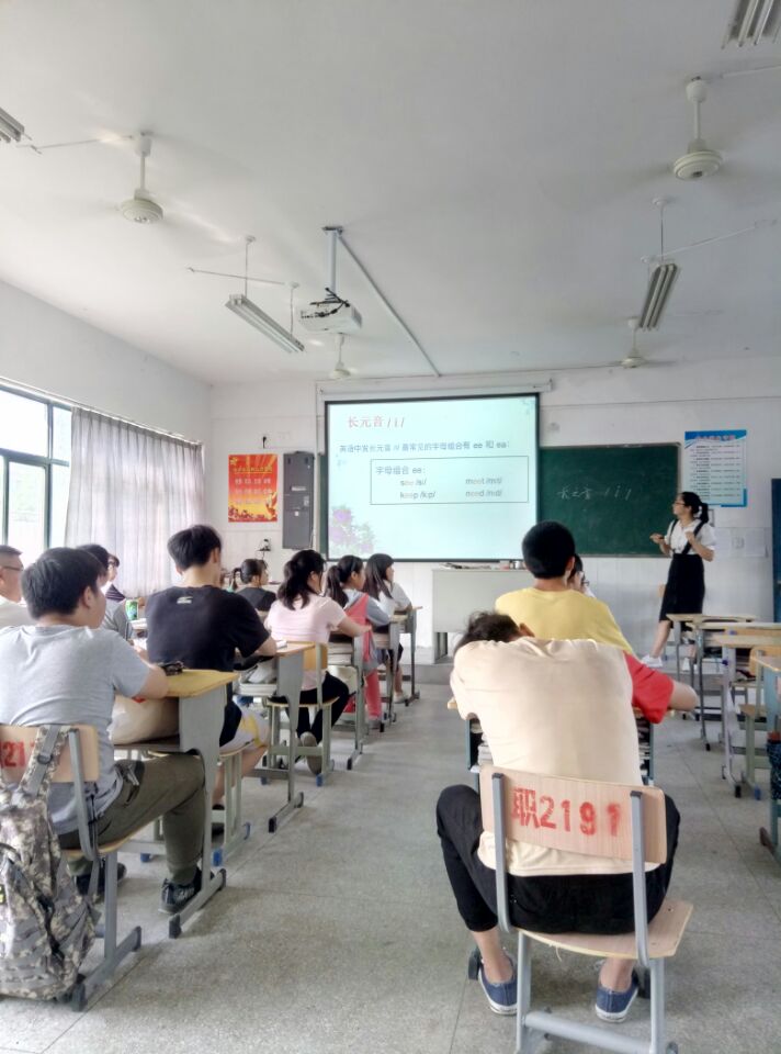 2018年6月14日下午第七节课芜湖机械工程学校胡琼老师在校教学楼A106教室执教校级英语公开课The Long Vowel / i / & The Short Vowel / I / ,校英语组教师参加了听课评课活动。