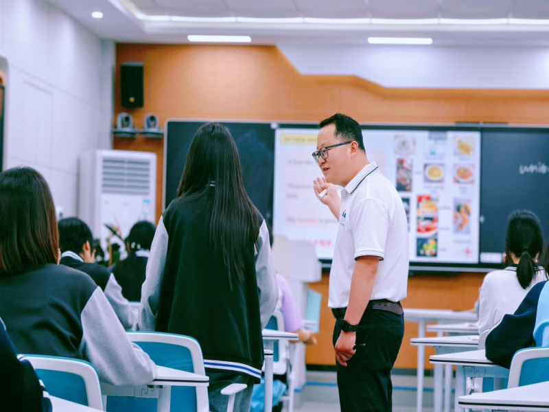 芜湖机械工程学校朱三山老师精准把握中职学生认知特点,以《Unit 6 Food and Drinks》为教学载体,通过“输入-内化-输出”螺旋上升模型的教学设计,将语言学习与职业能力培养有机融合。课堂伊始,通过"Show and Say"游戏呈现"Mapo Tofu","tancuyu"等食物图片,点燃学生热情,激活学生已有认知图式。并结合型“I love the spicy taste of...”让学生表达对食物的喜好,课堂氛围轻松活泼。对话环节,朱老师通过听录音、划重点、分组练习等,引导学生掌握本节课重点句型“What do you recommend?”“How would you like ...?”。授课采用“词—句—篇”三级语言支架,构建了“输入—输出”双向强化的深度学习闭环。最后的“餐厅角色扮演”的活动,把课堂推向高潮,学生化身服务员与顾客,在模拟真实场景中运用语言,朱老师适时点拨,鼓励内向学生参与,真正做到“眼中有全体,心中有差异”。英国诗人叶芝曾说:“教育不是注满一桶水,而是点燃一把火。”朱老师的课堂,正是这把照亮学生自信之光的火种。