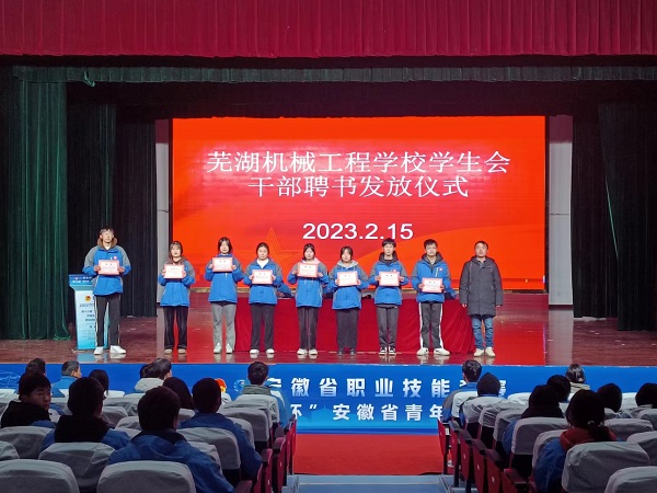 2月17日上午,在校报告厅进行第九届学生会干部受聘仪式。在受聘仪式上,新旧两届学生会进行了工作交接。