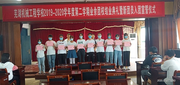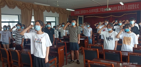 7月1日,在中国共产党成立99周年之际,芜湖机械工程学校2019-2020学年度第二学期业余团校结业典礼暨新团员入团宣誓仪式在校A教学楼五楼团员活动室举行,41名入团积极分子顺利结业并参加了新团员入团宣誓仪式。副校长张文健,校团委老师参会,仪式由团委书记钱保安主持。