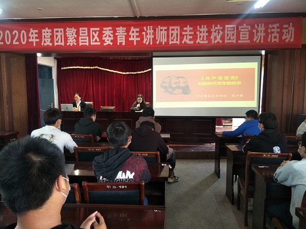 为进一步引导团员青年加强思想政治素养,提升理论水平,11月5日,团繁昌区委青年宣讲团走进芜湖机械工程学校,宣讲“《共产党宣言》对新时代青年的启示”,团繁昌区委副书记李国芳、机械工程部副主任高双余、校团委老师出席活动,机械工程部团员青年代表50余人聆听了宣讲,区委党校陈冬梅主讲。