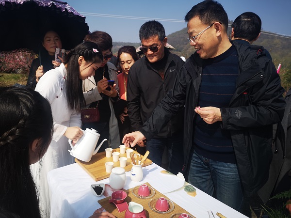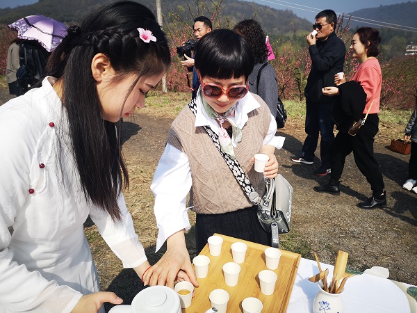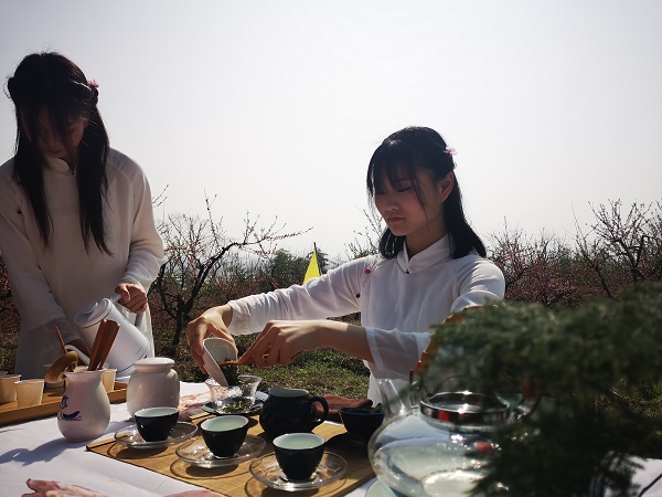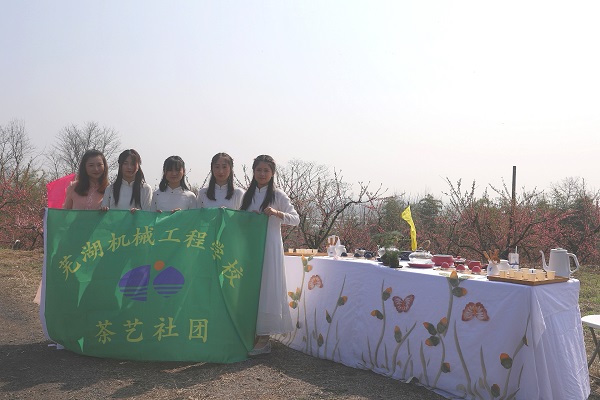 3月14日,芜湖机械工程学校茶艺社团应邀参加平铺镇桃花节活动。