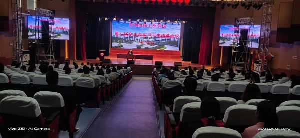 4月1日,校第八届学生会实习干事招募工作在多功能报告厅举行,校团委老师、第八届主席团成员、各部门部长和副部长、实习干事近150余人参加了会议。团委副书记林来宝主持。