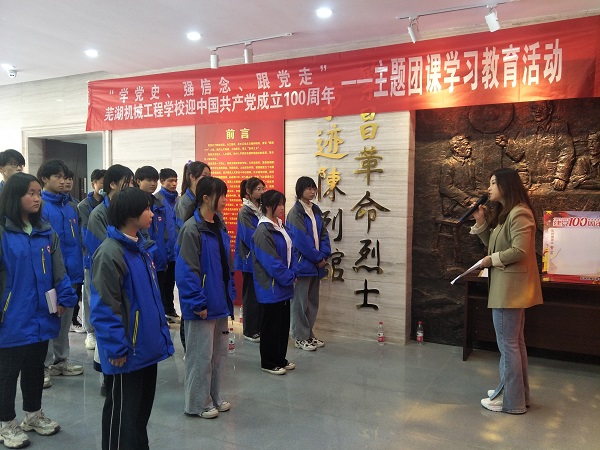 为深入学习党史,汲取奋进力量,4月6日,芜湖机械工程学校在繁昌革命烈士事迹陈列馆举办“学党史 强信念 跟党走”主题活动,让师生了解党的历史、传承红色基因、坚定理想信念。校团委全体人员和团员青年代表参加活动。活动由校团委委员卢寅同志主讲。