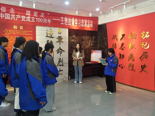 结合烈士陈列馆四个展区内容,将全体同学分为四组,学习馆内的英雄事迹,现场互动,让学生们深入馆区探究英雄们的丰功伟绩,让全体团员青年熟知作为新时代的青年学生,要做到学史明理、学史增信、学史崇德、学史力行,以昂扬姿态奋力开启全面建设社会主义现代化国家新征程,以优异的学业成绩迎接建党一百周年。最后由组长总结相应展区的内容,使同学们在参观的过程中心灵得到一次洗礼。
