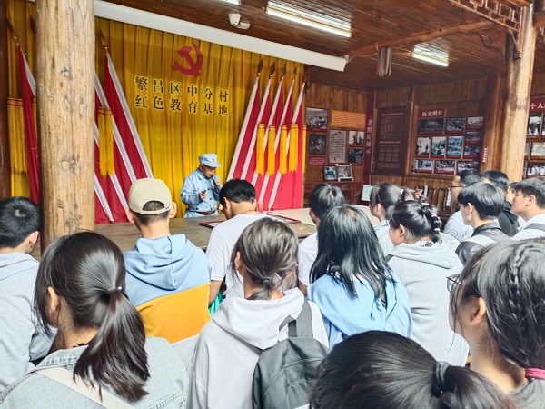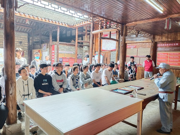 当天上午8点整,按照学校前期精心制定的活动方案和应急方案要求,全体人员在校门口集合徒步前往中分村,学生会主席团成员领队拉练红歌,同学们随着节奏徒步行进,队伍整齐、规范,十点准时到达中分村新四军第三支队司令部旧址。