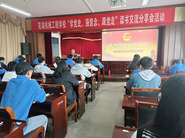 今年是中国共产党成立一百周年,为贯彻落实上级有关要求,把党史教育作为深化青少年思想政治引领的重大契机,引导广大团员青年厚植爱党、爱国、爱社会主义的情感,让红色基因、革命薪火代代相传,4月22日,芜湖机械工程学校在团员活动室开展“学党史、强信念、跟党走”读书交流分享会活动。校党支部书记朱诚、校团委委员、各班级团支部书记参加会议。