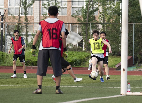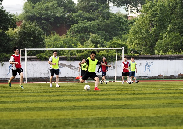 为进一步展示足球社团的训练成果,活跃校园气氛,6月16日下午,校足球社团在辅导教师叶明海的组织下,十几名老师与足球社团的球员们在校田径场举办了一场精彩的足球师生联谊赛活动。