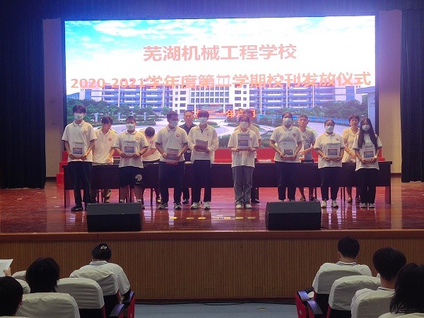 会议最后进行了校刊发放仪式,各班级团支部书记到会,代表班级领取了校刊。校刊的发放进一步明确了学生工作的宣传阵地作用,让全校师生进一步了解校园文化,创设出和谐校园氛围,彰显了“团安全、文明、和谐、快乐”的校风,打造了 “教学生做人,给学生本领”的教风,“学好技术、发展能力、提升素养”的学风。