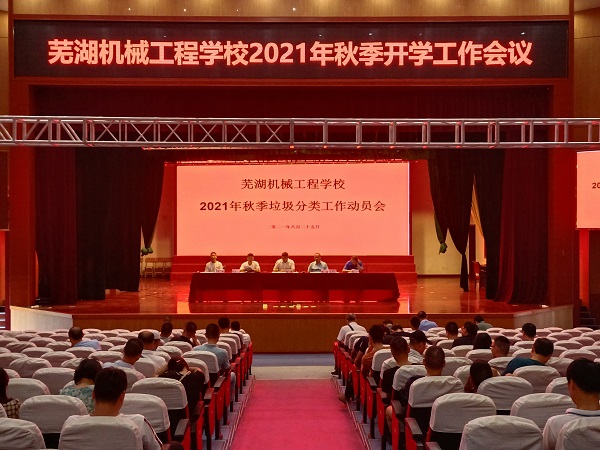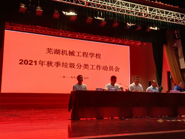8月25日,芜湖机械工程学校在校多功能报告厅召开垃圾分类工作动员大会,全面动员和部署校园生活垃圾分类工作。校党支部副书记张玉主持会议,分管副校长张文健做工作要求,全校教职工参会。