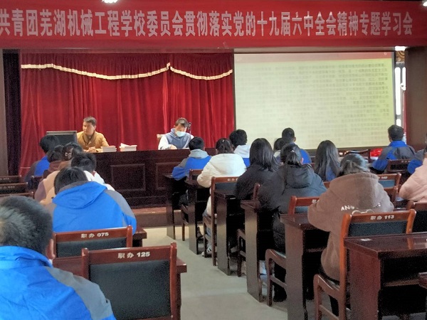 12月1日,共青团芜湖机械工程学校委员会组织全体团干专题学习贯彻党的十九届六中全会精神。认真学习了 “两个确立”的政治内涵和实践意义,校团委委员、组织部干部和各班级团支部书记参加了专题学习会。