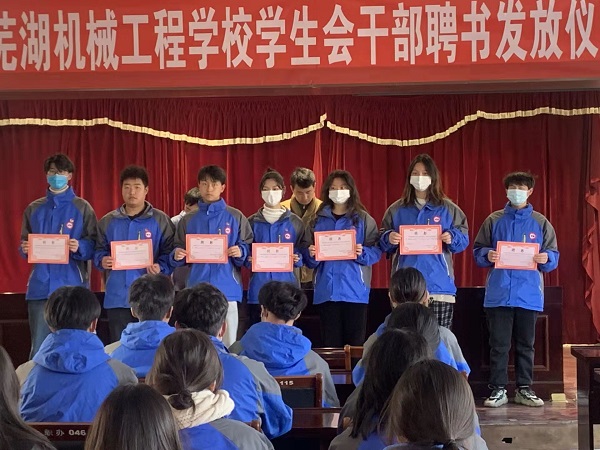 在受聘仪式上,新旧两届学生会进行了工作交接。校团委书记钱保安同志对第八届学生会干部的工作给予一定的肯定,同事也提出了三个希望,对第九届学生会干部提出了相应的要求。学生会主席章弘飞代表第八届学生会干部发言。聘任书的发放,使每一位学生干部更加肯定了在校期间能严格要求自己,勤奋学习、发挥特长、德才兼备,成为明日的精英。