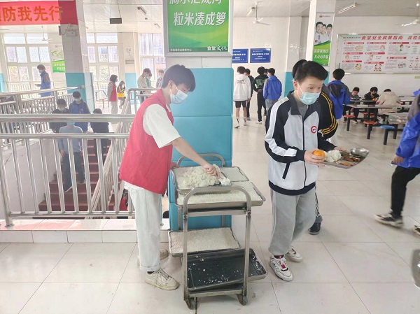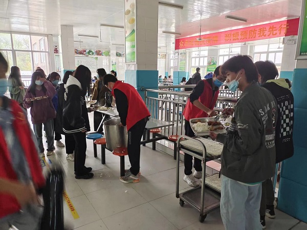 封校的这段时间,校园里都有志愿着的身影,哪里缺人手就补到哪里。对校学生会成员来说, 疫情就是命令,防控就是责任。“请大家保持一米间距,带好口罩,有序进行核酸检测”是志愿者最常说的一句话。不厌其烦地穿梭在人群之中,细心而又温柔地提醒着不符合防疫规范的学生,汗水、辛劳、热情,不曾抱怨,吃苦耐劳。