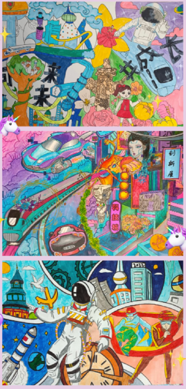 为了组织好活动,绘画社团老师前期动员全社团学员精心做好准备,选择绘画题材,进行构思创作,围绕主题进行想象,把对未来的向往和对生活的热爱,在画纸上描绘得淋漓尽致。收集上来的作品,由学校美术老师组成评委组进行最终评选。经过校级评选,前六名美术作品推荐参加区级比赛,并在艺术生中选报了6幅书法作品参与区级评比。