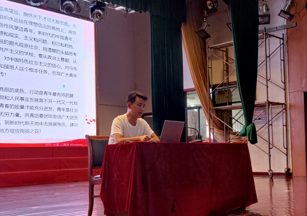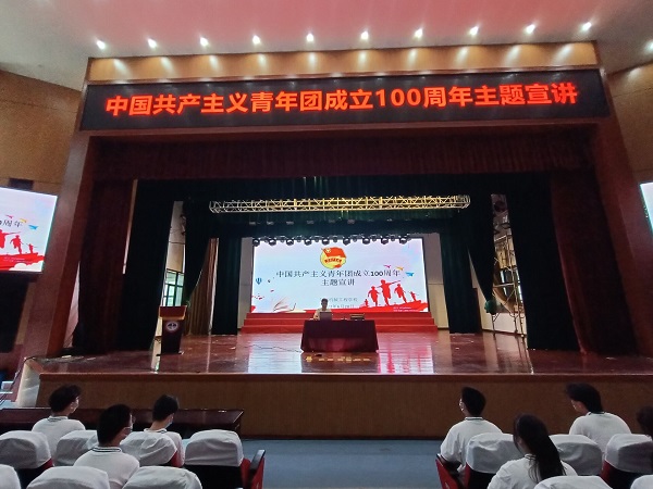 6月20日,芜湖机械工程学校组织全校团员在报告厅专题学习习近平总书记在中国共产主义青年团成立100周年大会上的重要讲话精神。校团委书记作主题宣讲。