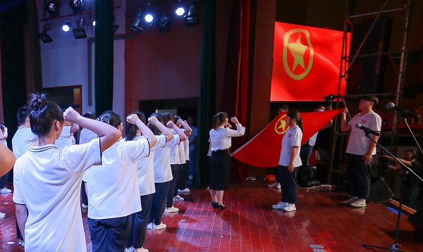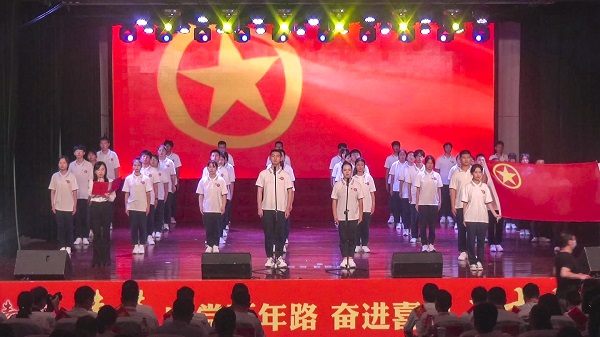 6月23日,51名经过业余团校考核合格的学员在校多功能报告厅参加了全区“青春向党百年路 奋进喜迎二十大”新团员入团仪式。仪式由团区委副书记汪玮主持。