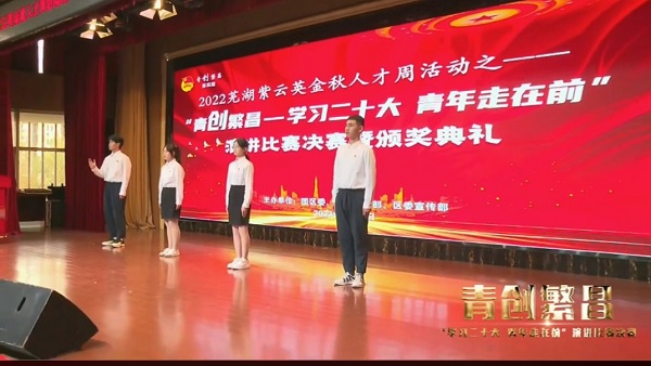 11月7日,由团区委、区委组织部、区委宣传部举办的“青创繁昌-学习二十大 青年走在前”演讲比赛在图书馆三楼举办,芜湖机械工程学校四名青年学生代表受邀参加了结尾的诗朗诵《青春中国》。