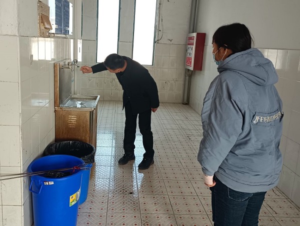副校长张文健带领校团委负责同志、卫生保洁管理人员全面查看了校园各楼栋厕所现状,对标对本严格按照“六无、四净、二通”的工作要求指导物业开展专项整治工作。张校长在督察过程中就发现的问题强调:校园保洁公司要严格对照标准进行自查自纠,列出问题清单,在既定的时间内完成整改工作,使校园厕所卫生整治行动见成效,积极响应全市打造“最干净城市”行动计划,创造“最干净校园”。