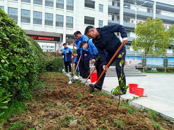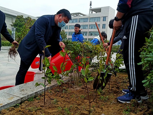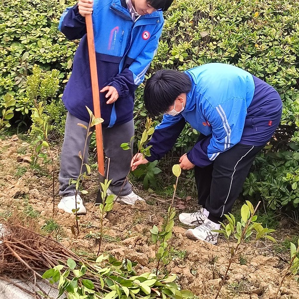 春暖花开芳草绿,植树造林正当时。3月8日,在植树节即将来临之际,为激发同学们爱护植物、保护生态环境的意识,学校着眼核心素养的培养,以“美化校园我行动,爱绿护绿我能行”为主题,党员和团员志愿者在校园开展了植树活动,以党带团,引导同学们体验劳动的快乐,感悟生命的力量。