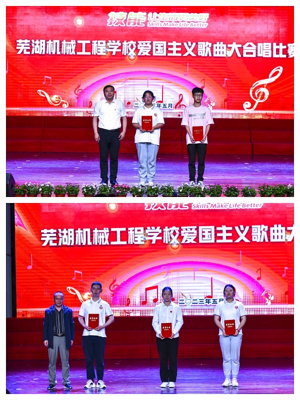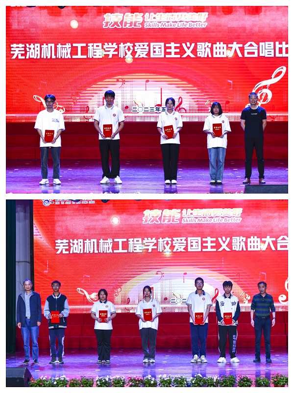 本次爱国主义歌曲大合唱是对全校师生进行艺术思政课教育的有效途径之一。各班级在班主任和辅导员老师的悉心指导下,秉承人人参与的原则,利用课余时间精心准备,积极练唱,展现了芜湖机械工程学校全体青年学生心向祖国、朝气蓬勃、昂扬向上的精神面貌。全部代表队用嘹亮的歌声和整齐的旋律歌颂了中华民族自强不息的伟大精神、阔步向前的豪迈气概,唱出了新时代青年对党、对祖国、对社会主义的浓厚深情,歌声催人奋进,气势振奋人心。特别是舞蹈社团《辉煌中国梦》和朗诵社团《百年回声》等精彩爱国主义题材表演一次次使现场的氛围推向高潮。通过评委的现场打分最终评出一等奖2名、二等奖3名、三等奖5名、优秀奖7名。
