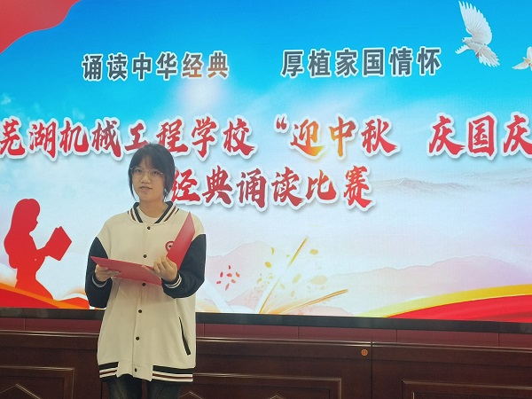 为了深化校园文化活动,进一步弘扬和传承中华民族灿烂文化,营造积极向上的校园文化氛围,9月27日,芜湖机械工程学校在阶梯教室举办了以“诵读中华经典 厚植家国情怀”为主题的“迎中秋 庆国庆”经典诵读比赛。来自全校各班级的65组代表参加了活动。