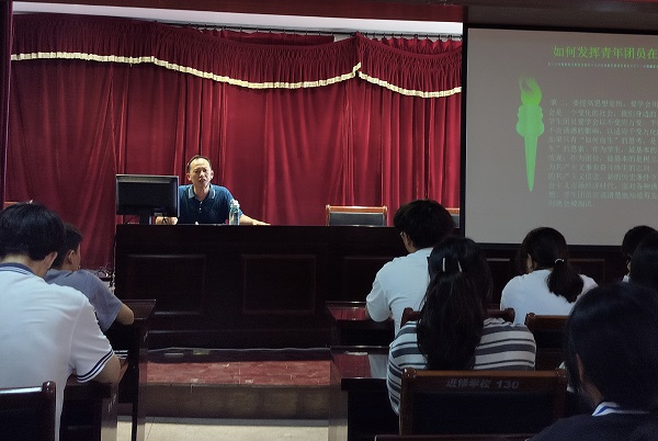 9月28日,校团委组织全体团校学员在团员活动室开展主题团课活动。机械工程部副主任高双余从“如何发挥团员先锋模范带头作用”作培训。