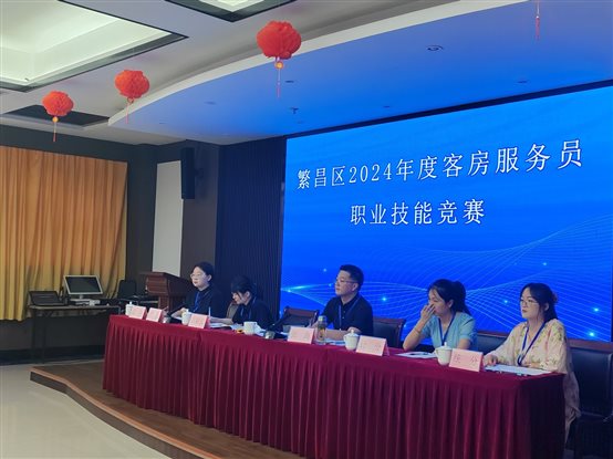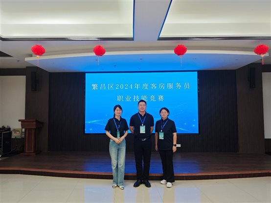 芜湖市繁昌区2024年酒店项目客房服务职业技能竞赛于9月8在繁昌区马仁山庄举行,芜湖机械工程学校旅游专业张海、曹寅、古彩云三位老师应邀担任此次赛项评委。