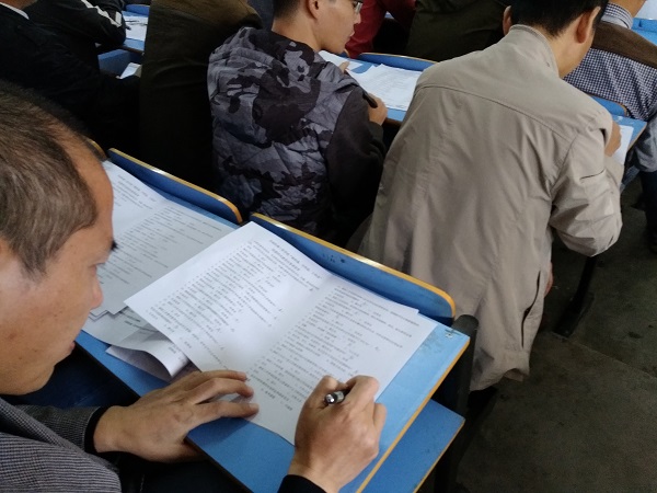 会上,副校长刘琳宣读了《芜湖机械工程学校开展“铸师魂,守师道,立师表”师德师风建设活动方案》,办公室印发了《问卷调查表》,全体教工认真学习,认真填写。