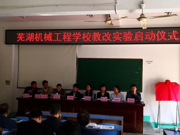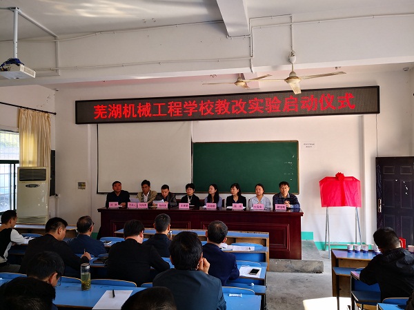 10月19日上午,在芜湖机械工程学校阶梯教室举行了芜湖机械工程学校教改实验启动仪式,县教育局党委委员、工会主席刘海滨主持启动仪式,繁昌县人民政府副县长王重娟,华师大长三角职业教育发展研究院(芜湖中心)常务副主任、华师大职业教育与成人教育研究所副教授孙玫璐,华师大职业教育与成人教育研究所党支部书记、副教授匡瑛,繁昌县教育局党委书记、局长滕德愿,华师大长三角职业教育发展研究院研究员、安师大教科院教授路宝利,华师大职业教育与成人教育研究所博士傅雪凌,华师大长三角职业教育发展研究院(芜湖中心)副主任梁红光出席仪式,学校全体教工参加了启动仪式。