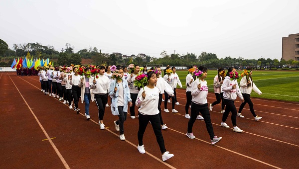 伴随着铿锵有力的运动员进行曲,国旗护卫队、校旗护卫队、花束队、彩旗队等先导方阵和33支各班级参赛代表队,踏着雄浑的旋律,喊着嘹亮的口号依次走过主席台。矫健的步伐,彰显青春的活力;蓬勃的朝气,展现运动的风采。