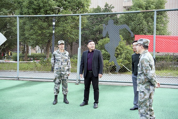 2020年9月24日清晨,正值国庆、中秋双节来临之际,东部战区某部在芜湖机械工程学校运动场组织开展军事比武活动。校长刘琳、校党支部书记朱诚、校党支部委员办公室主任俞晓勇一行来到训练场地对部队官兵进行了慰问,向参加军事比武的所有官兵致以崇高的敬意和节日的问候,并送去了慰问品。
