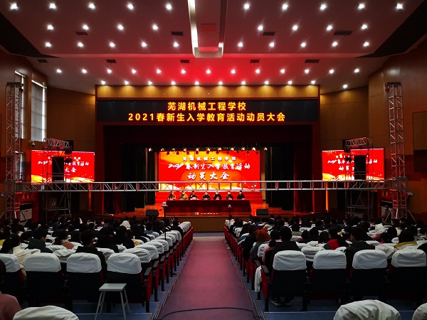 2021年1月18日上午,芜湖机械工程学校在校多功能报告厅组织召开了2021春新生入学教育动员会,会议由校党支部书记朱诚主持,繁昌区教育局教育股股长、招办主任陈晓明,芜湖机械工程学校校长刘琳、副校长张文健、桂华、李鹏及全体学生、辅导员、教官参加了会议。