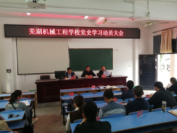 2021年4月28日,芜湖机械工程学校在校阶梯教室召开党史学习动员大会,学习《繁昌区教育系统关于开展党史学习教育的工作方案》,布置学校党史学习教育工作。校党支部副书记、校长刘琳主持会议。