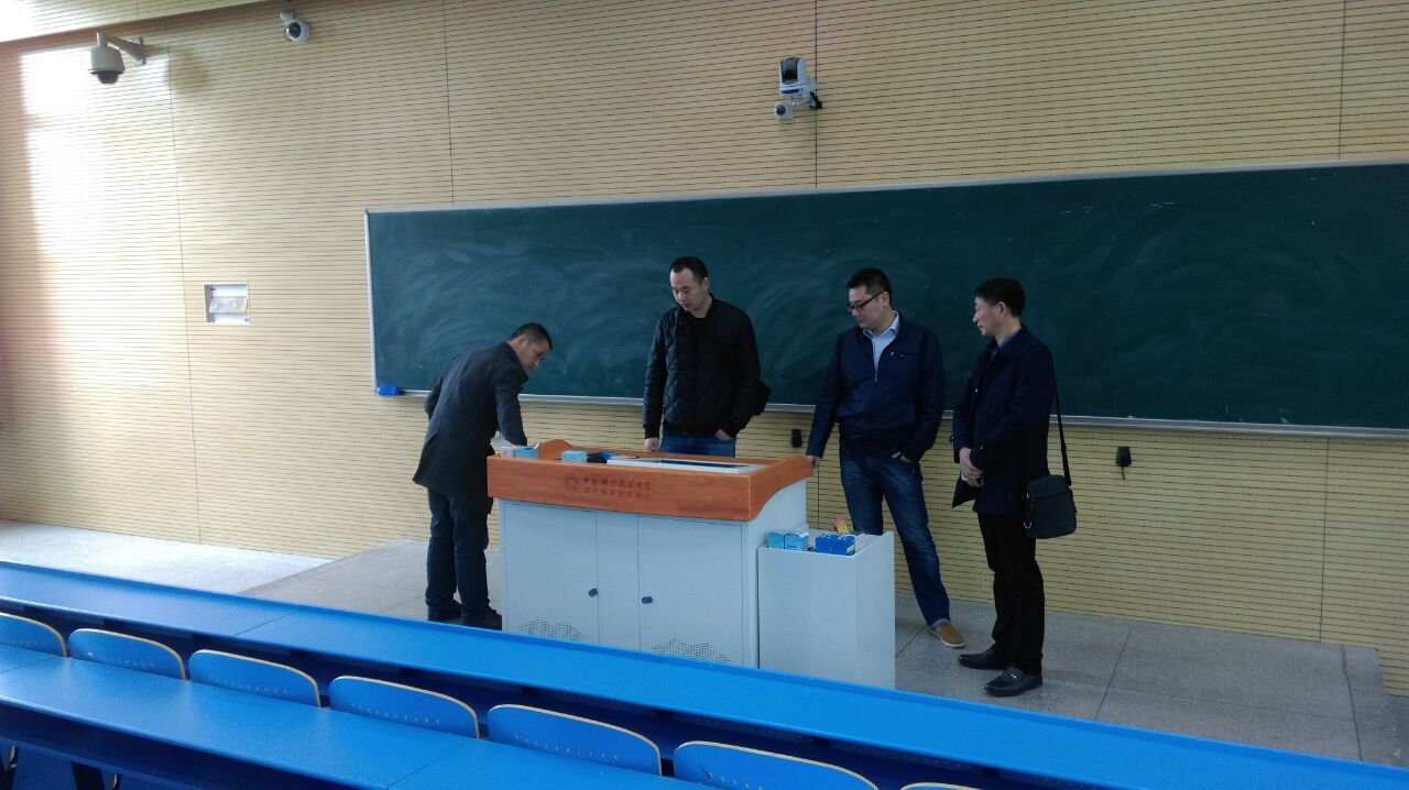 2016年3月27日,利用到合肥开会的间隙,芜湖机械工程学校校长王心良及信息办相关人员来到中科大东校区参观多媒体教学设备。随着多媒体教学在校园的普及,现代化的教学手段对于提高课堂教学效率发挥了重要的作用,对大部分教师来说,多媒体设备在教学中已经不可或缺。芜湖机械工程学校现有的多媒体设备建设时间比较早,每个班级的设备在使用的过程中都有不同程度的损坏,有些设备比较陈旧,使用、管理都非常不便,不能满足数字化校园建设的规范要求,本次校领导考察的目的就是要了解当前主流的教学多媒体设备及先进的教学管理理念,从而为学校多媒体设备的全面升级、改造做好准备。