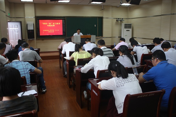 6月26日下午,芜湖机械工程学校党支部在五楼录播教室召开本学期第三次党员大会,由校党支部书记、校长王心良给全体党员上党课。