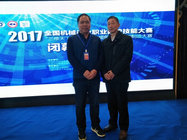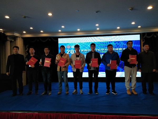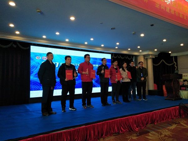 仲裁组组长李斌、芜湖机械工程学校副校长张文健、北京三维天下股份有限公司吕月林为获得三等奖的选手颁奖