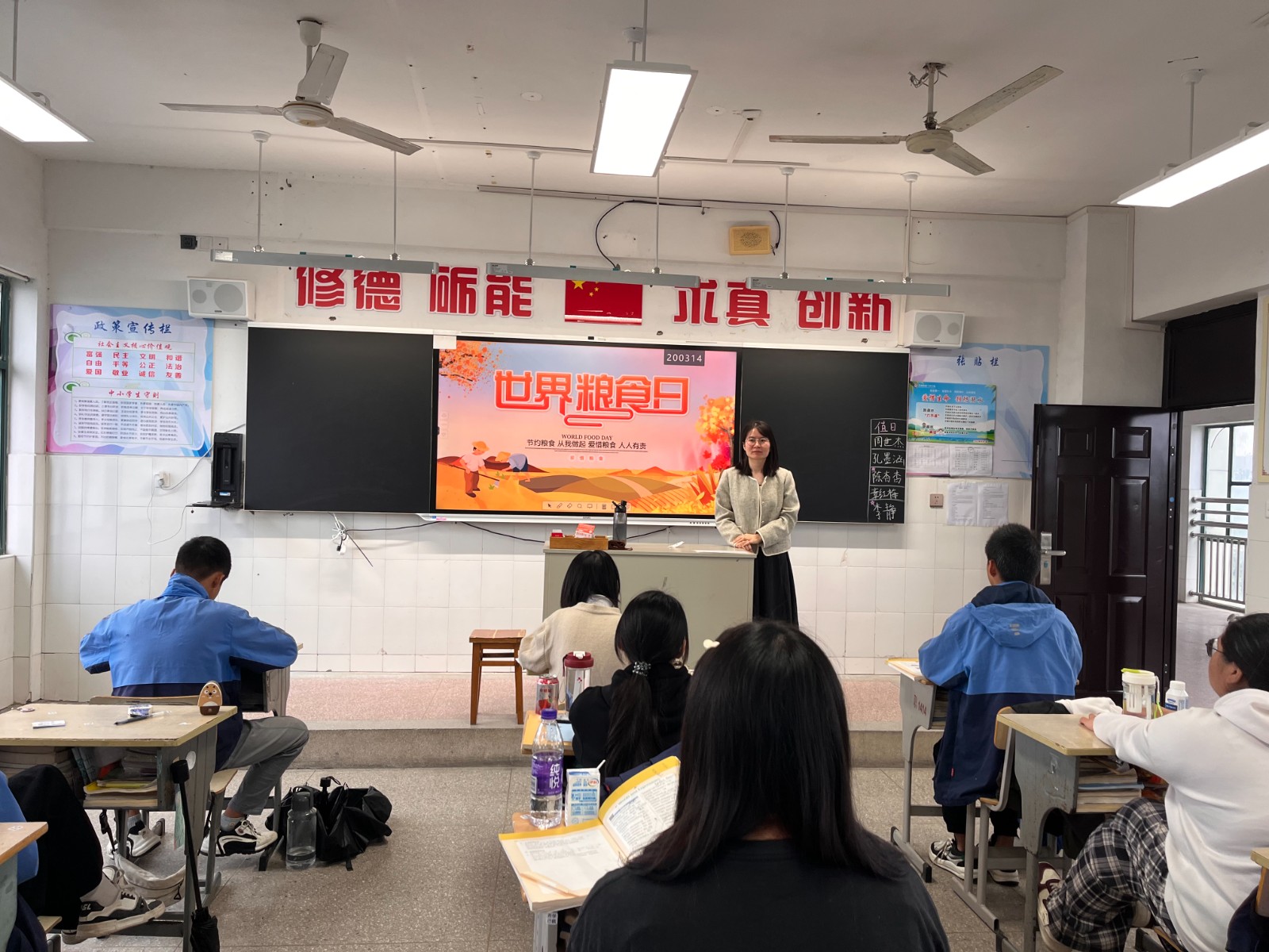 10 月 14 日星期一班会课上,各班级班主任紧密结合 10 月 16 日世界粮食日,开展了丰富多彩的主题教育活动。在主题班会中,班主任向学生们讲解了勤俭节约的重要性,同时也介绍了如何做到勤俭节约的做法。同学们表示会从自身做起,适量点餐,避免浪费食物,养成良好的生活习惯。