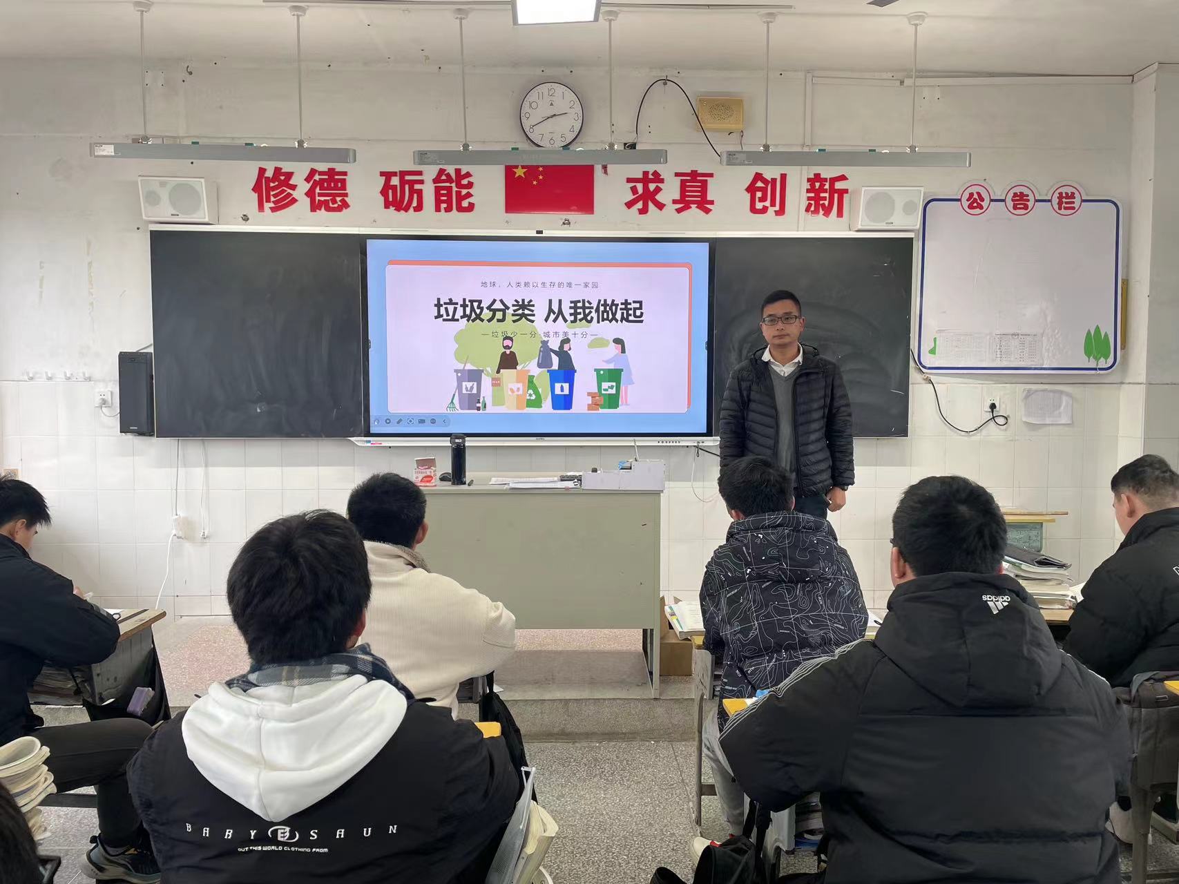 12月9日,周一的主题班会课上,各班班主任召开了垃圾分类主题班会。班主任们通过制作的PPT,以图文并茂的形式向同学们详细讲解了垃圾分类的基础知识,从垃圾的不同种类,如可回收垃圾、有害垃圾、厨余垃圾以及其他垃圾的区分,到各类垃圾正确投放的方法,一一进行了深入浅出的介绍。