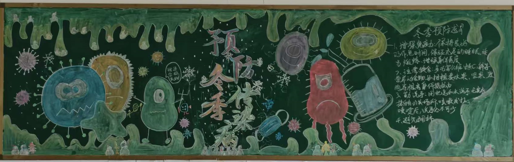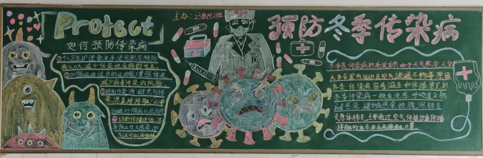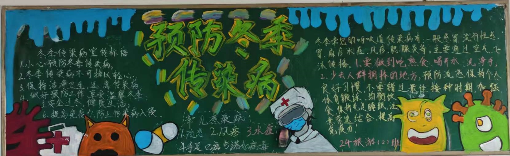冬季是呼吸道疾病高发季节,为了增强学生防范传染病意识,芜湖机械工程学校组织各班级展开“冬季传染病预防”为主题的黑板报评比活动。各班级迅速响应,精心设计,积极布置绘制。