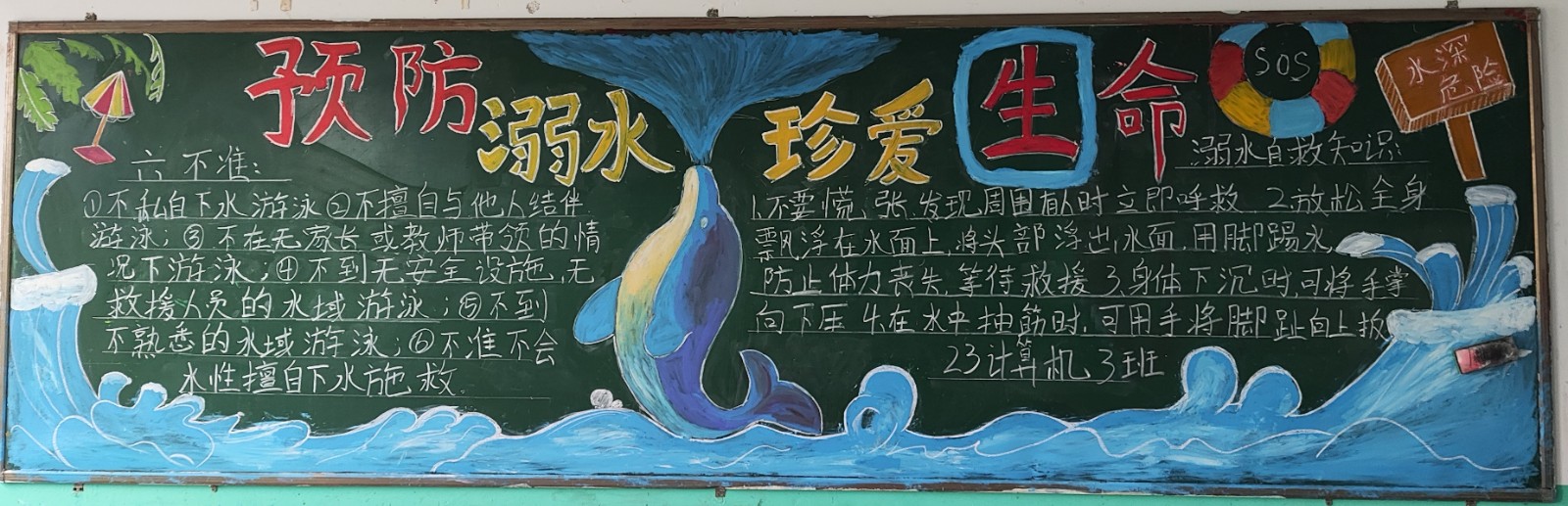 为增强学生的安全意识,提高学生的自我保护能力,近日,芜湖机械工程学校举办了 “珍爱生命,严防溺水”主题黑板报评比活动。本次活动得到了全校师生的积极响应,各班级精心策划,用一幅幅精美的黑板报,传递着对生命的敬畏和对溺水危险的警惕。