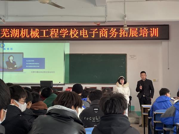 为使电子商务专业的学生了解当今电商行业的最新趋势,引导同学们树立明确的专业学习和职业目标,2月23日星期三上午,在学校招生就业办与信息服务部的促使下,学校联合繁昌数字经济产业园相关企业,在芜湖机械工程学校举行了“芜湖机械工程学校电子商务拓展培训”讲座活动, 20级、21级、22级电子商务专业共3个班级的同学参加本次讲座。