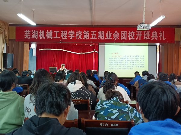 为进一步加强入团积极分子对团组织的深刻认识,提高对团务知识的了解,3月7日,芜湖机械工程学校第五期业余团校在团员活动室开展“团务基础知识学习”为主题的团课活动,校团委书记主讲。