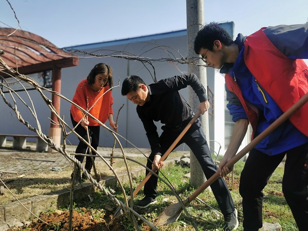 为进一步提高在校师生的绿化意识,加强劳动教育,在校党支部的带领下,校党员教师协同团员青年于3月9日在清风长廊开展了“共建绿色美丽校园”为主题的植树节活动。