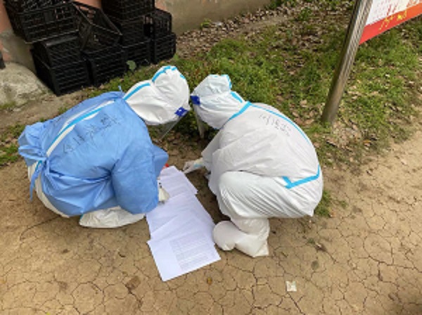 在得知社区缺少核酸信息采集扫码的志愿者时,又第一时间主动报名参与。特别是王露以前在峨桥村村民委员会工作时,进行过核酸信息登记的相关培训,经验丰富。在社区的统一安排下,每天早上六点半准时到达集合地点,换上“大白”防护服,担任“扫码”志愿者任务,跟随核酸采集的人员后面开始每天扫码信息登记工作。期间每个人都要爬9个单元楼,体力耗费相当大,天气炎热的时候全身汗流浃背。王露表示“每次做完一户核酸之后,听到居民们向我们道谢,在门上粘贴的他们自己制作的小画稿时,那些辛苦就变得不值一提,反而给我们增加了很多的信心。因为我们坚信胜利的曙光即将到来,我们所有人的努力不会白费,好消息也会一个接一个传来,让我们静待春暖花开!!!”