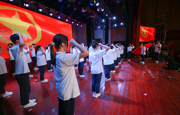 6月23日,51名经过业余团校考核合格的学员在校多功能报告厅参加了全区“青春向党百年路 奋进喜迎二十大”新团员入团仪式。仪式由团区委副书记汪玮主持。
